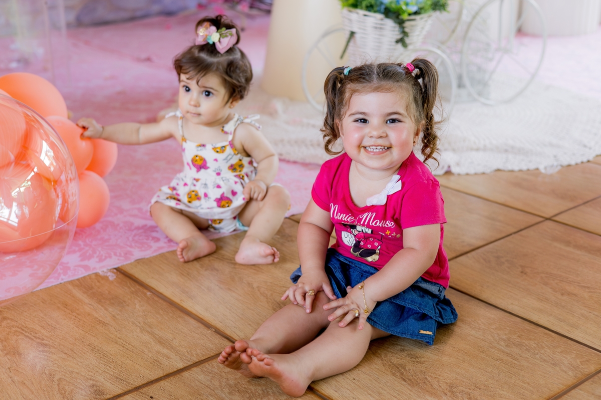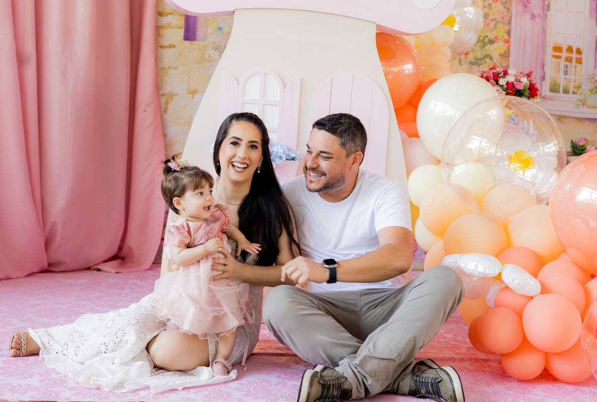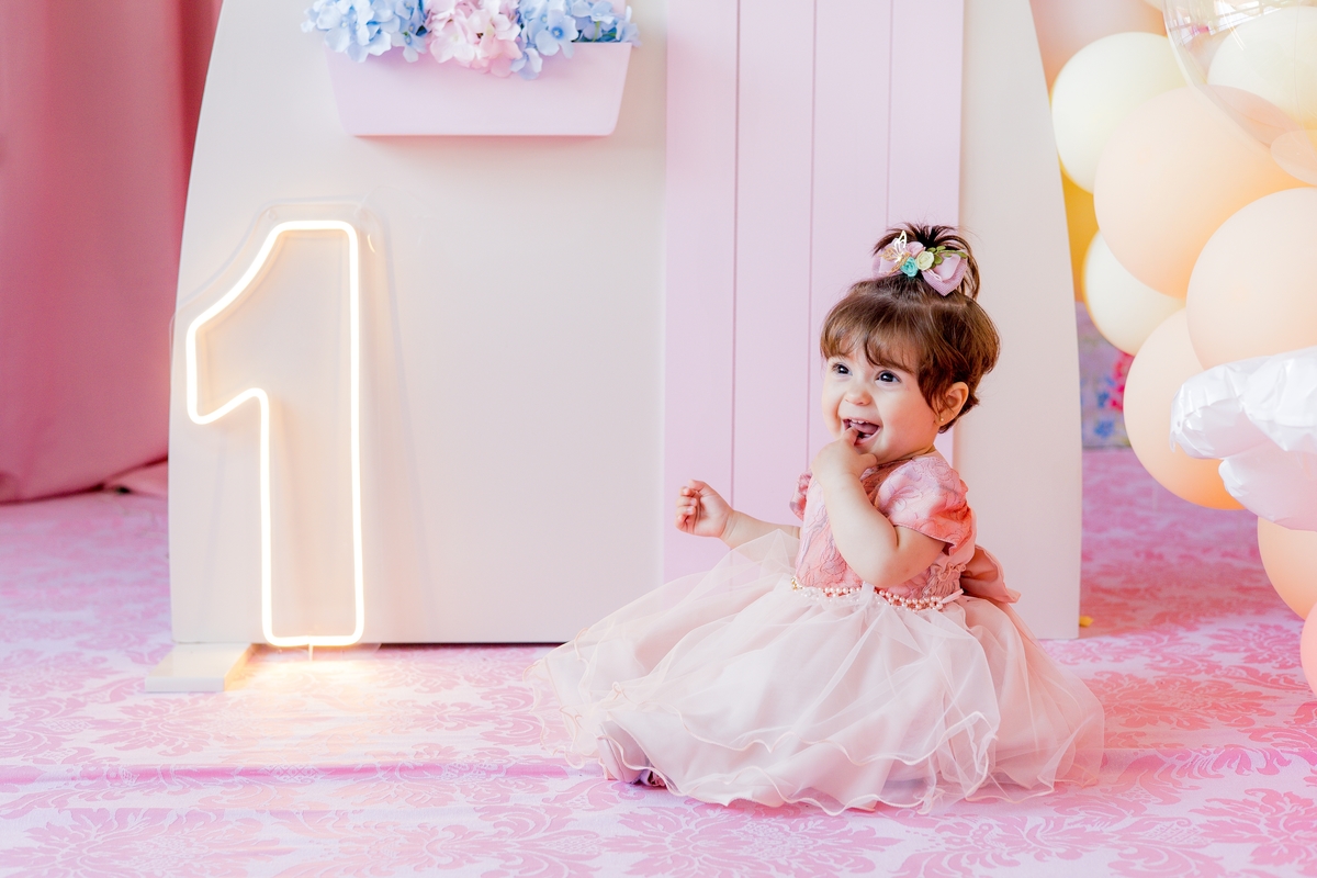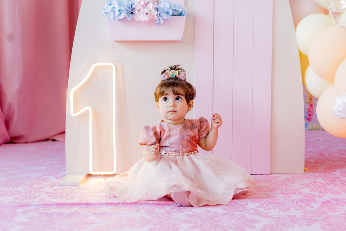 "Comemorando o primeiro aniversário da doce Íris com sorrisos, travessuras e muita alegria! 🎈✨