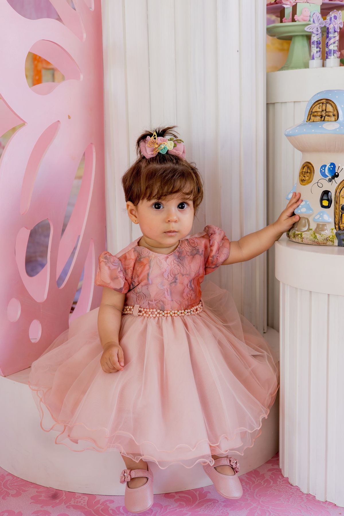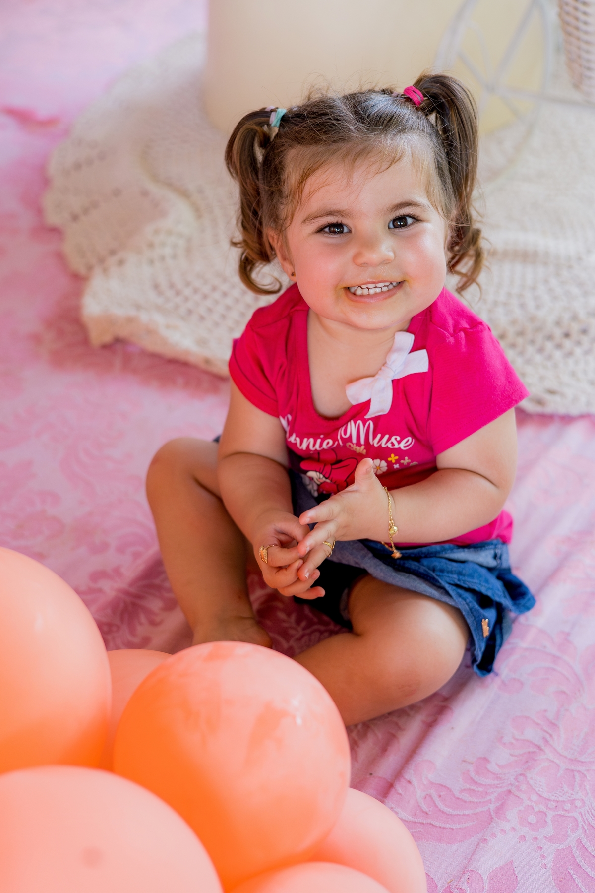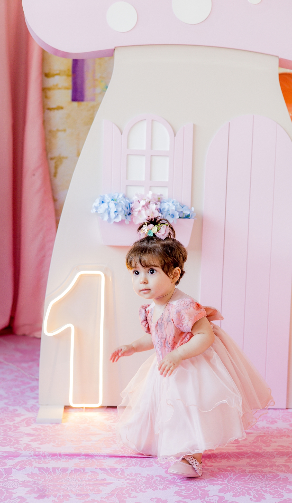 "Comemorando o primeiro aniversário da doce Íris com sorrisos, travessuras e muita alegria! 🎈✨